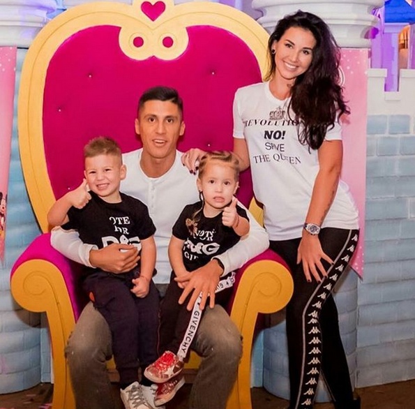 Півзахисник «біло-синіх» Віталій Буяльський з дружиною та донькою.