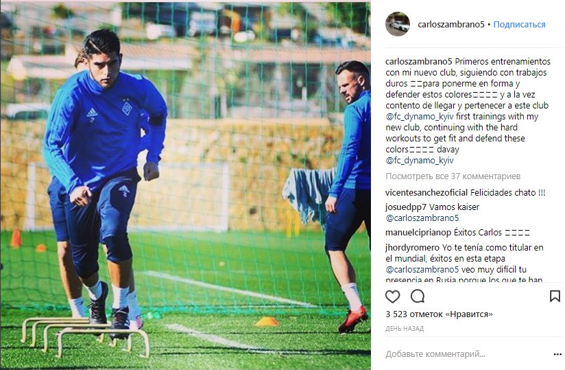 «Перше тренування з моїм новим клубом. Щасливий бути тут і захищати кольори такої команди, як «Динамо». Продовжую напружену роботу, щоб швидше адаптуватися та відповідати рівню «Динамо», - написав Самбрано у своєму Instagram.