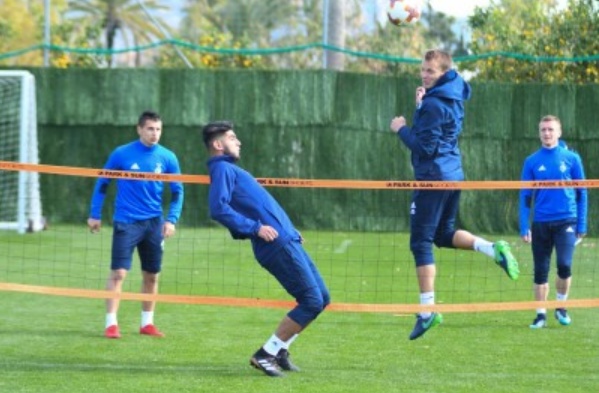 Провівши в повному складі розминку та виконавши вправу на стабілізацію разом із тренером з фізпідготовки, далі гравці були поділені на дві групи. Футболісти, які грали у вчорашньому матчі з «Академією Пушкаша», провели час за грою в теніс-бол (перебивання ногами м’яча через сітку), інші же працювали у квадраті над контролем м’яча.