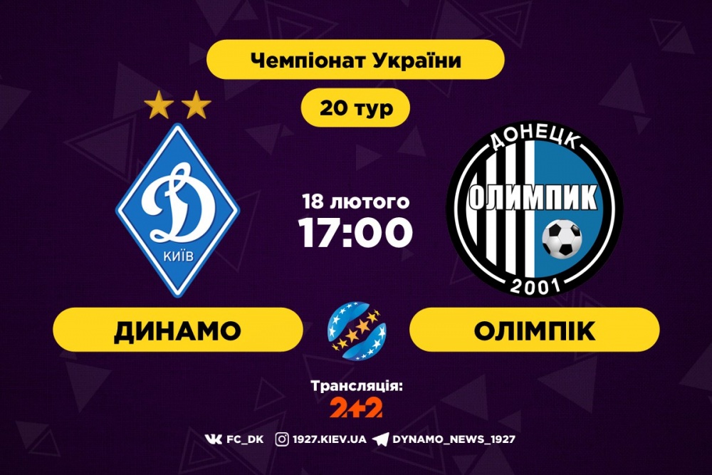 Додамо, що стартовий свисток у поєдинку «Динамо» - «Олімпік» прозвучить о 17:00. Гру в прямій трансляції покаже телеканал «2+2». За онлайн- і текстовою трансляцією слідкуйте на нашому сайті.
