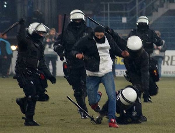 Приблизно за 20 хвилин до кінця матчу фанати гостей почали спалювати прапори «Пяста», що спровокувало господарів, які виламали огорожу між секторами.