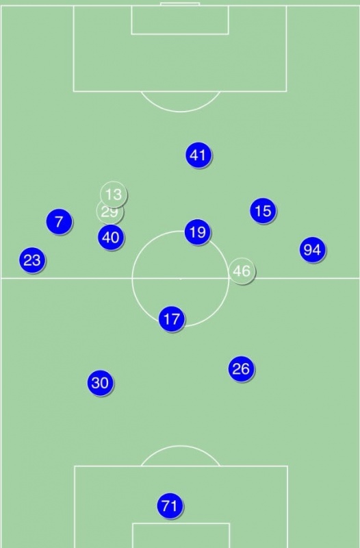 Усереднені позиції гравців Динамо в матчі з Ворсклою.