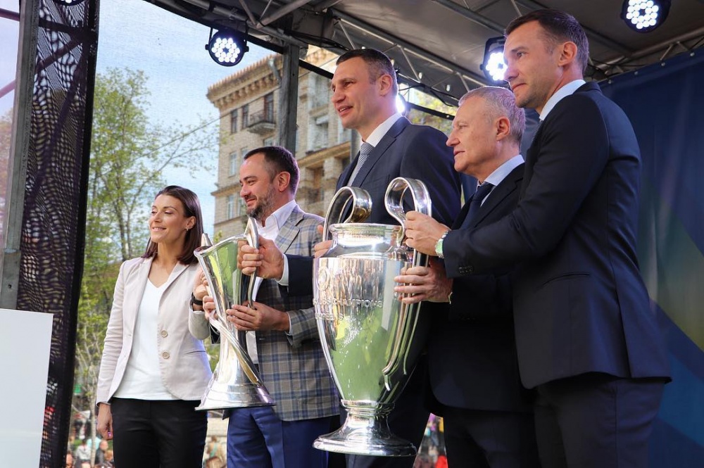 «Я щасливий сьогодні за Київ і Україну. У цьому кубку закладена величезна історія: найкращих команд та футболістів, які щороку змагаються у фінальному матчі. Я радий, що у нас є можливість наживо побачити цей матч. Я всіх запрошую 26 травня на фінал Ліги чемпіонів. Я дуже радий за наше молоде покоління футболістів, яке стане свідком цього прекрасного фіналу та на власні очі побачить найкращих гравців світу», -- сказав під час урочистої промови амбасадор фіналу чоловічої Ліги чемпіонів УЄФА Андрій Шевченко.
