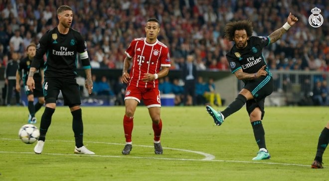 Втім, під завісу першого тайму мадриці завдяки влучному удару Марсело зрівняли рахунок.