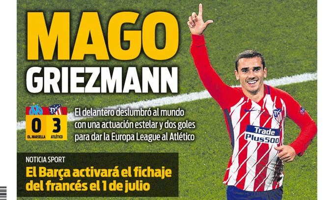 «Неймовірний Грізман робить Атлетіко чемпіоном!» У каталонському Sport.es більш лаконічні, але все ж віддають належне Атлетіко, Сімеоне і, звичайно ж, Грізманну, який оформив дубль. «Два голи француза дозволили Атлетіко оформити комфортну перемогу. Марсель добре почав матч, але це затьмарила травма Пайє за рахунку 0:1».