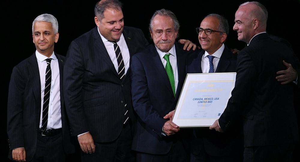 Точно те города, которые примут чемпионат мира, еще не определены: есть пул из 23 населенных пунктов, семь худших из них отсеют позже. Впрочем, в Канаде и Мексике уже определились - это соответственно Торонто, Монреаль, Эдмонтон и Мехико, Монтеррей, Гвадалахара.