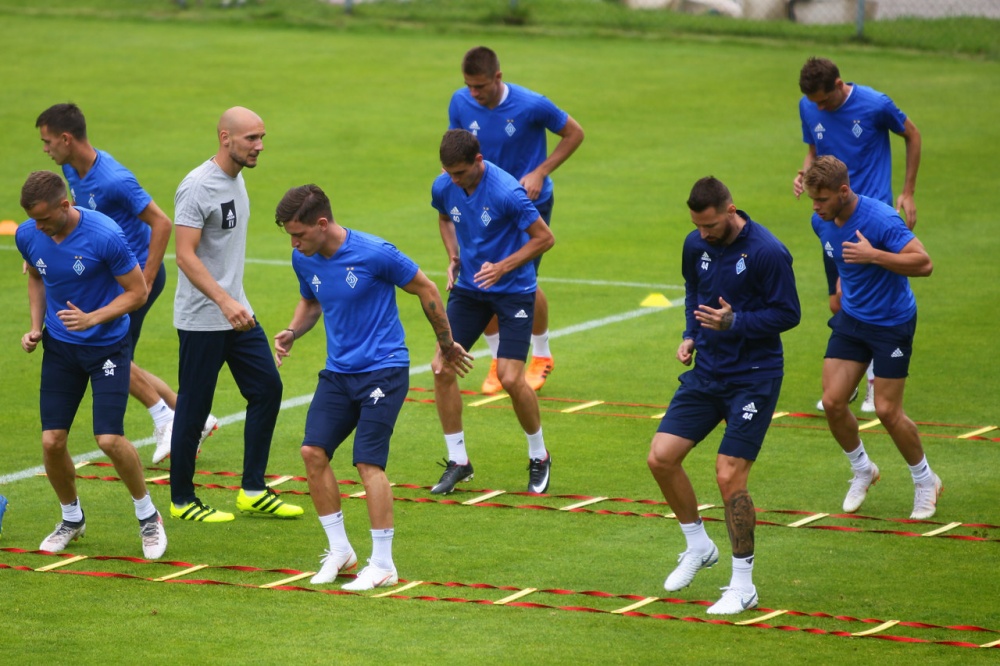 Після прибуття до футбольного комплексу «біло-сині» отримали на полі установку на заняття від Олександра Хацкевича та розпочали інтенсивну розминку, яку проводив тренер з фізичної підготовки Віталій Кулиба.