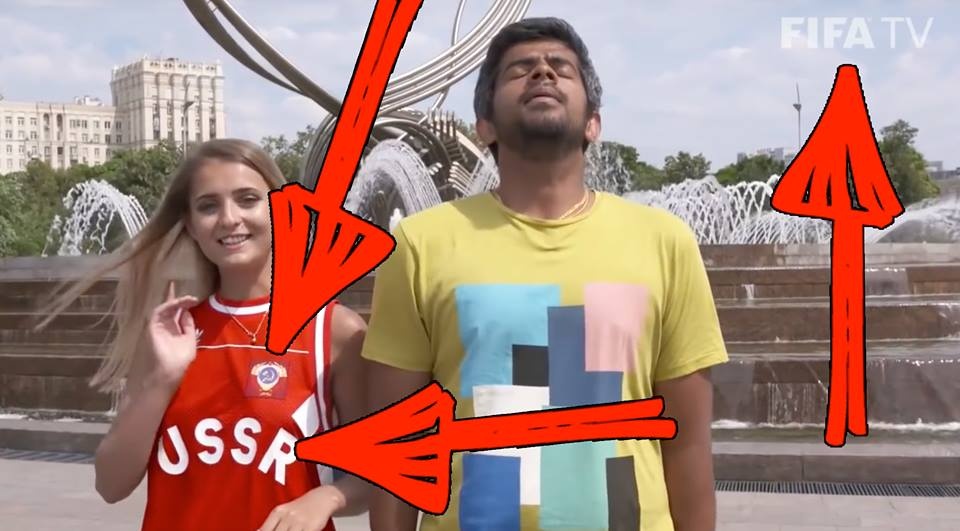 — Футбол поза політикою? Говорити «Слава Україні» під час проведення ЧС-2018 не можна навіть на власній сторінці в соцмережах, а вести випуски на офіційному(!!!) YouTube-каналі FIFA у футболці з написом «USSR», заперечуючи тим самим розпад СРСР і незалежність України — це можна?