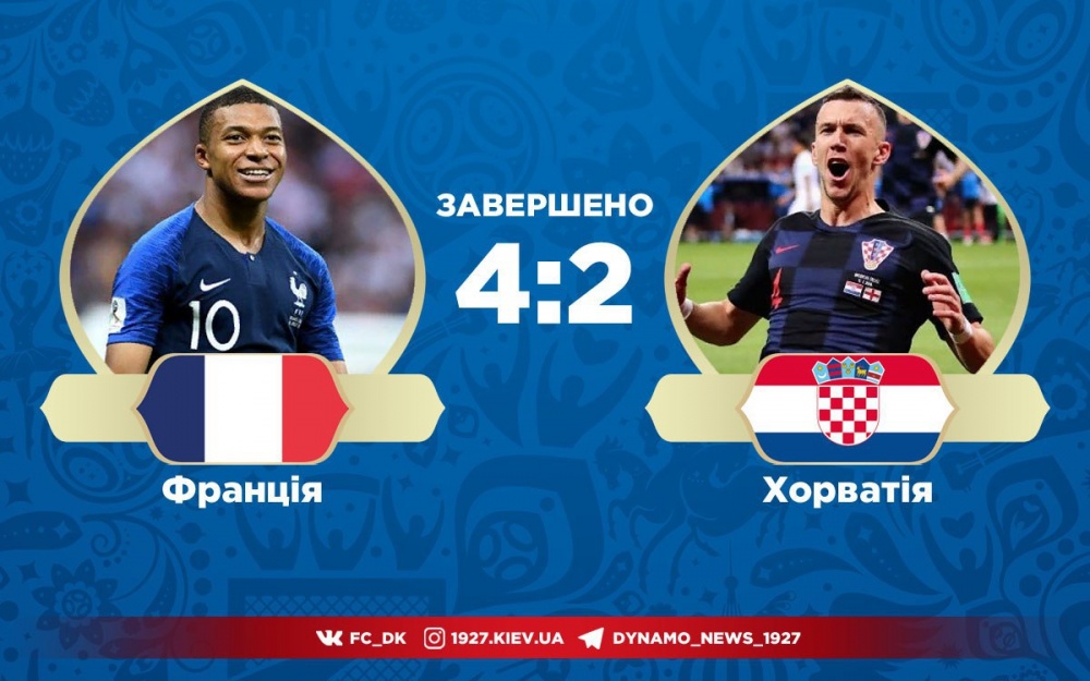 Голи: Манджукич, 18 (аг), Грізманн, 36 (пен), Погба, 59, Мбаппе, 65 – Перішич, 28, Манджукич, 69