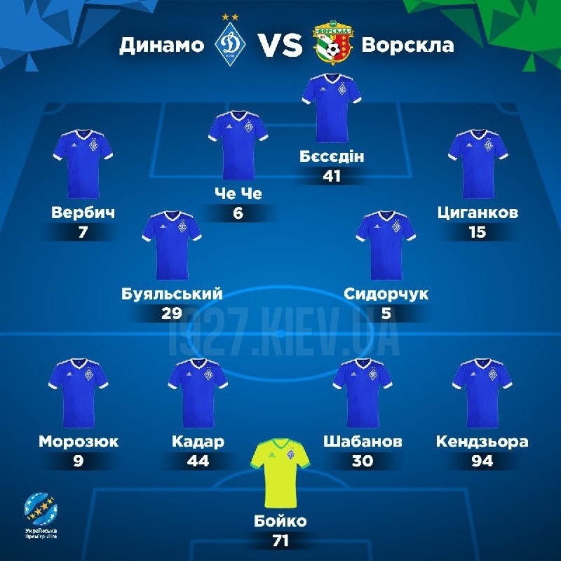 Орієнтовний склад «Динамо»: Бойко, Кадар, Шабанов, Морозюк, Кендзьора, Буяльський, Сидорчук, Вербич, Че Че, Циганков, Бєсєдін
