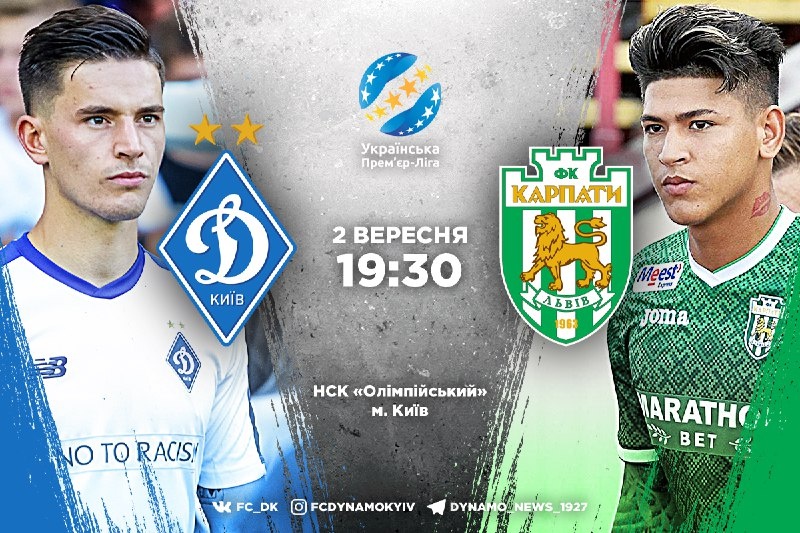 Матч «Динамо» – «Карпати» відбудеться в неділю, 2 вересня, на НСК «Олімпійський», початок – о 19:30.