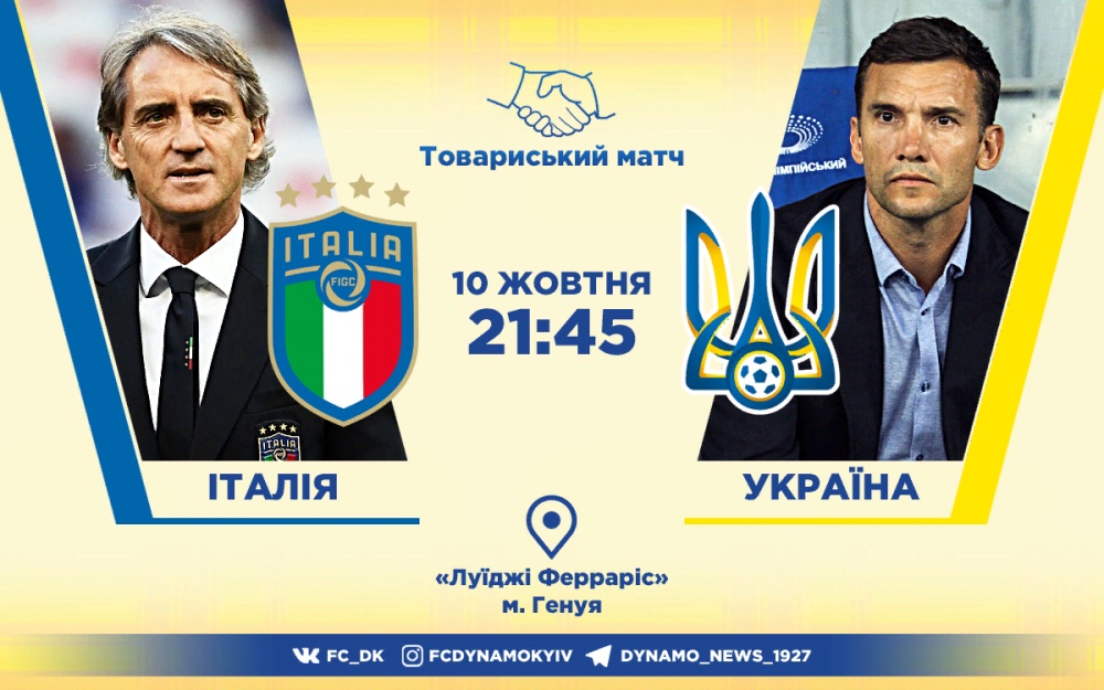 10 жовтня о 21.45 за київським часом збірна Італії прийматиме національну команду України. Матч відбудеться в Генуї на стадіоні «Луїджі Ферраріс».
