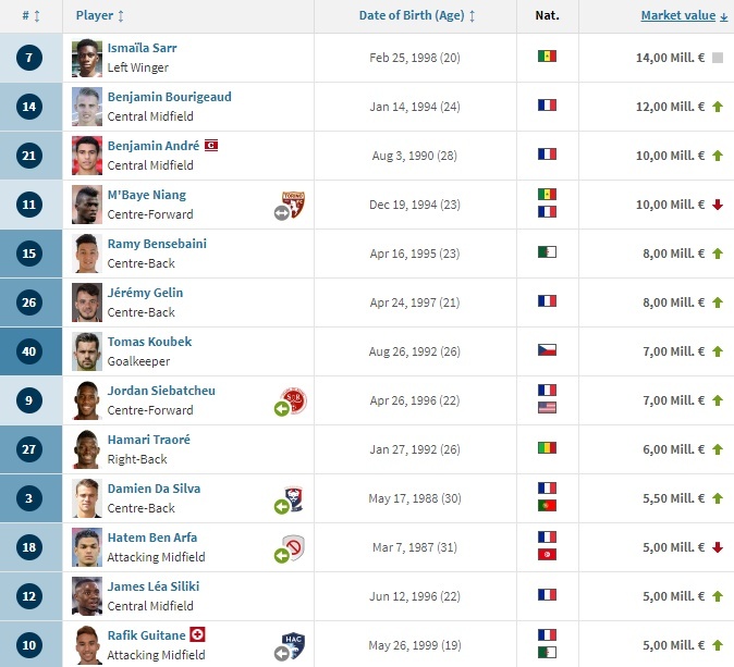 Найбільше у складі наших суперників коштує вінгер Ісмаїла Сарр, який може проти «Динамо» не зіграти (14 млн євро). Далі йдуть хавбеки Бенжамен Буріго (12 млн) та Бенжамен Андре (10 млн), а також центрфорвард Мбайє Н'янг (10 млн).