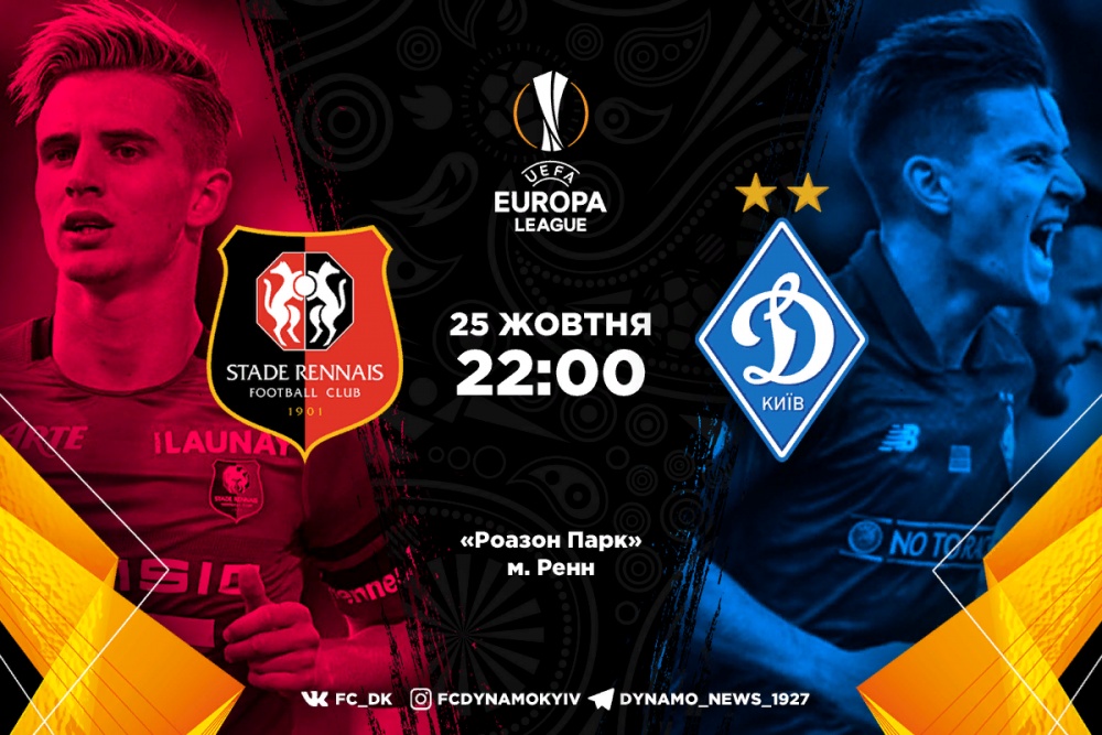 У четвер, 25 жовтня, «Динамо» проведе третій матч групового раунду Ліги Європи. У Франції кияни зіграють з місцевим «Ренном» з однойменного міста. Початок о 22:00.