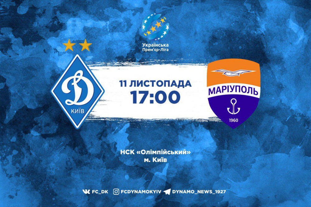 Нагадаємо, що матч 15-го туру УПЛ «Динамо» - «Маріуполь» відбудеться у неділю, 11 листопада, на НСК «Олімпійський». Початок - о 17:00.