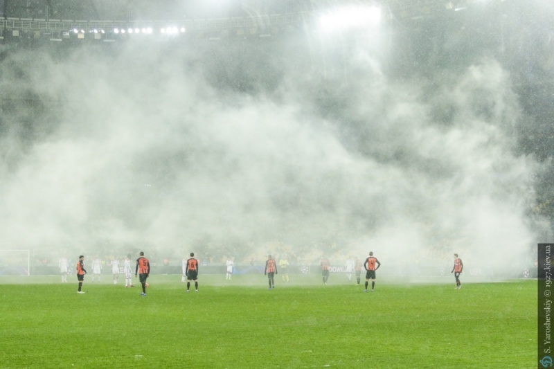 «Шахтар» звинувачують у порушенні двох пунктів регламенту: кидання вболівальниками сторонніх предметів на поле і використання піротехніки.